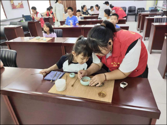 在科技街社区暑期志愿服务的实践中,我真正领会到“文化传承”与“社区温度”的鲜活模样。起初以为组织非遗手工课只是流程化的活动执行,直到陪老人完成水拓画创作、教孩子研磨香粉制作香熏,才懂这些课堂是串联岁月的丝线——老人指尖的颜料晕染着旧时光的故事,孩子眼中的好奇映照着文化新生的可能。