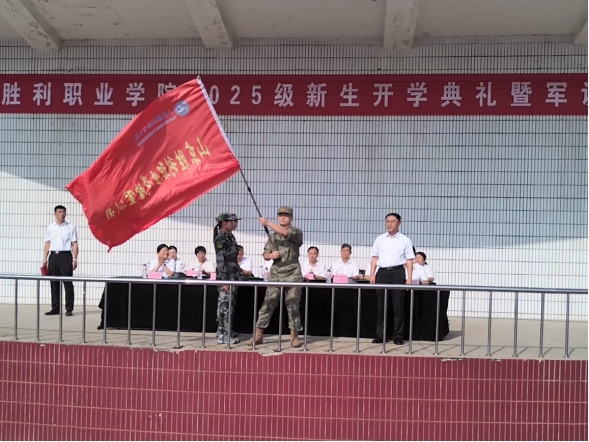 2025年9月4日上午,两校区2025级新生开学典礼暨军训开营仪式在雄壮的国歌中拉开帷幕。学校党委副书记、校长张玉珍,党委副书记、纪委书记仲卫部,党委副书记杨峰,党委委员、副院长王吉坡,党委委员、副院长孙卫娟出席会议。活动由杨峰副书记主持,仲卫部副书记为军训团授旗。
