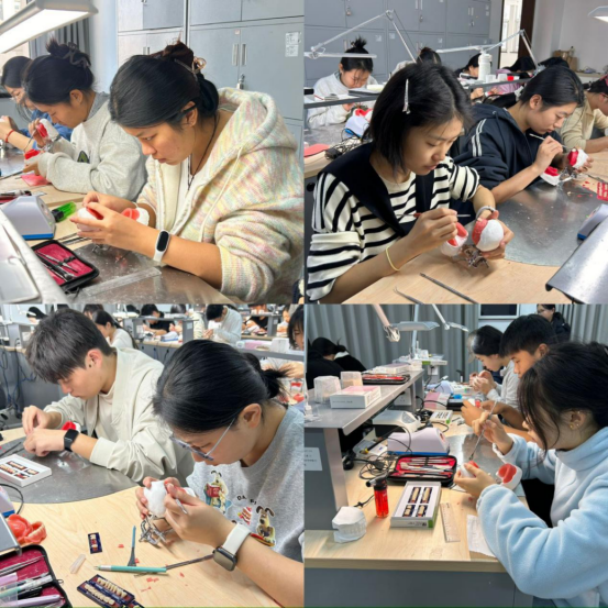 比赛现场气氛紧张而有序,参赛同学们全神贯注,充分运用所学知识与日常训练积累的经验,在技工桌前精心雕琢,细致排牙,展现出了扎实的理论基础、娴熟的操作技巧和追求卓越的工匠精神。整个技工室内,充满了严谨专注、精益求精的竞技氛围。
