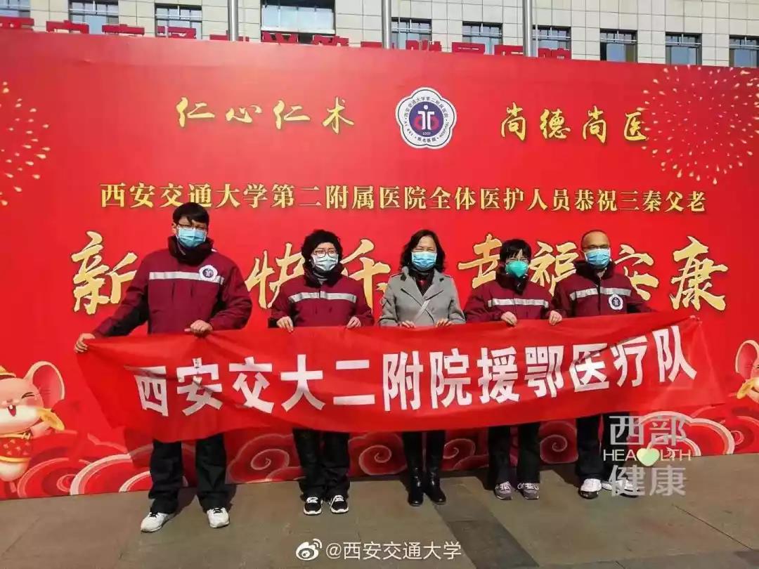 2月2日,陕西省第二批援鄂医疗队出征。西安交大第一附属医院5位、第二附属医院4位医护人员赴武汉。
