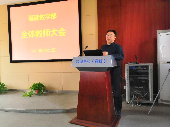 221日下午,基础教学部在明德楼召开新学期全体教师会,基础部全体老师参加了会议。会议由基础教学部党支部书记郭若华主持。