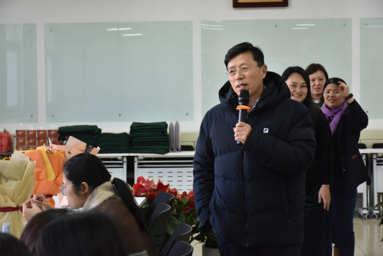 学校党委副书记、院长张玉珍,学校党委委员、副院长杨峰,学校党委委员、副院长孙卫娟来到活动现场为老师们送上最衷心的祝福,与老师们一同体验英山缠花的魅力。