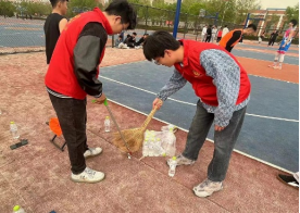 学院组织开展“亮身份,作表率 我是团员我带头”志愿活动,活动以“清洁校园,共创文明”为主题,开展净化校园环境志愿者活动。在绿意盎然的操场上,点点“志愿红”格外耀眼。经过一番忙碌,遗落在角落的垃圾不复存在,篮球场、绿茵场、围栏等一尘不染。