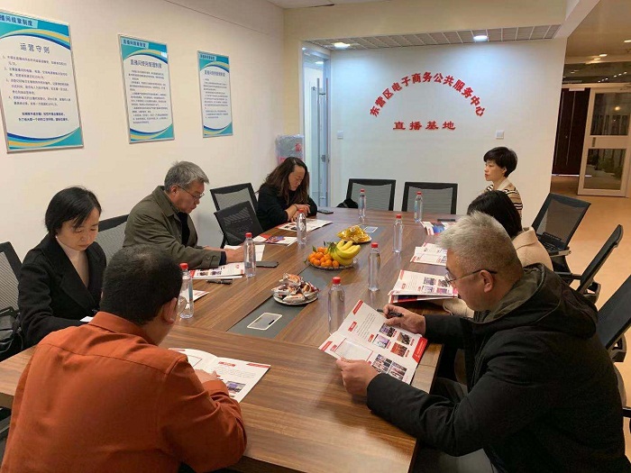 周董事带领我院人员参观了其直播基地、直播间、运营室等,并详细介绍了公司的发展历程、主要业务等情况。张德胜书记、张建民院长分别介绍了我院物流、电子商务专业的人才培养目标、学生现状、实训实习等情况。
