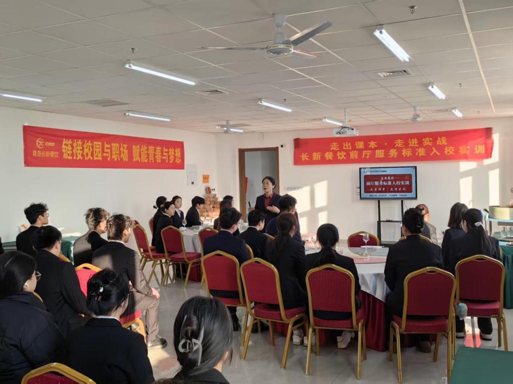 2025年11月20日,酒店管理学院与青岛长新餐饮集团携手将企业标准的“前厅服务实训”课程引入校园,标志着双方在校企深度融合与人才培养模式创新上迈出关键一步。