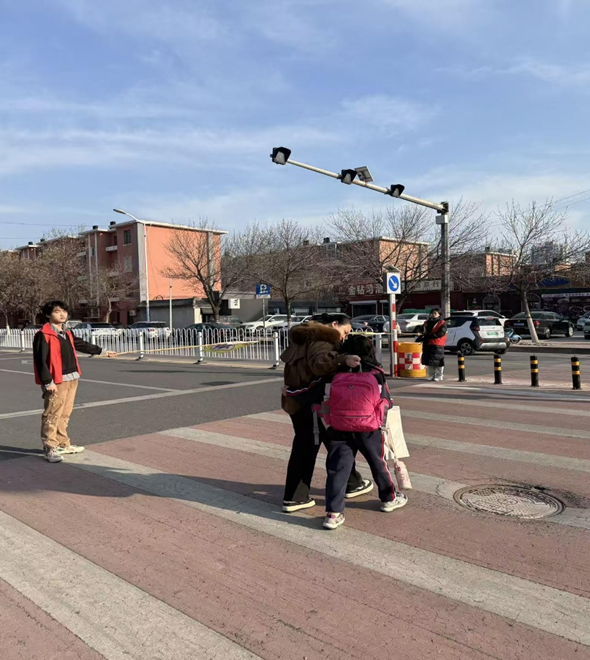 活动中,志愿者们身着统一红色志愿服,准时在学校门口及关键斑马线点位值守。上下学高峰时段,大家手持引导旗,积极引导车辆礼让行人,细心护送低年级学生安全过马路,提醒家长规范停放车辆,耐心回应路人咨询。志愿者们分工清晰、协作有序,用坚守与细心在路口筑起一道温暖可靠的 “安全屏障”,有效疏导校园周边交通,赢得学校师生、家长与市民的广泛认可与好评。