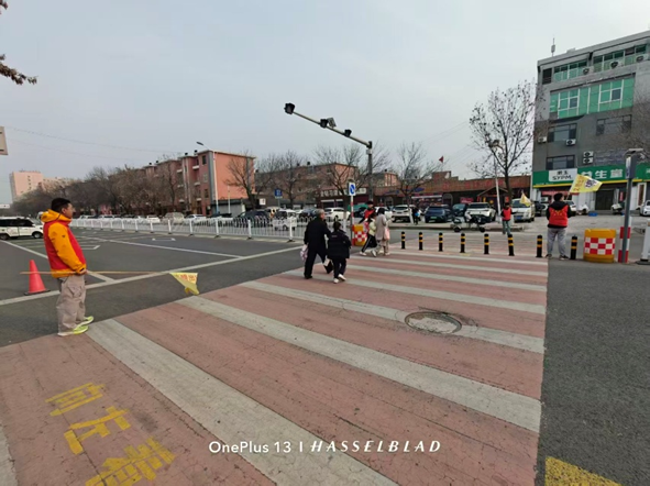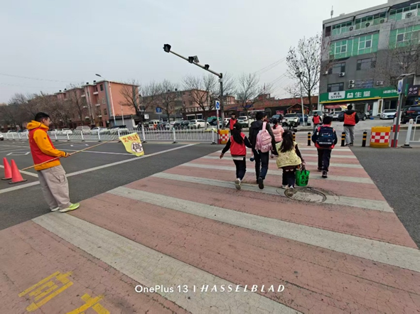 志愿者们将学院安全责任理念与精细化管理思维融入护学服务,科学定岗、分工协作。大家身着统一红马甲,手持引导旗,在路口疏导交通、引导车辆即停即走;在斑马线旁牵手护送低年级学生安全通行;在人流密集区维持秩序、提醒安全注意事项,全程守护学生平安离校。