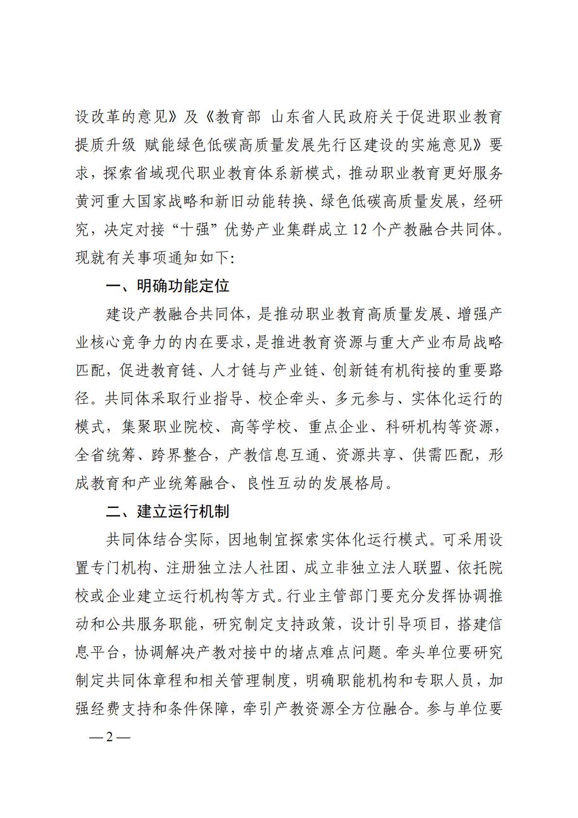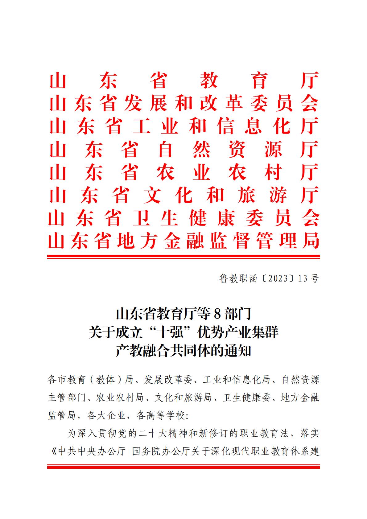 鲁教职函〔2023〕13 号山东省教育厅等8部门关于成立“十强”优势产业集群产教融合共同体的通知(1).pdf