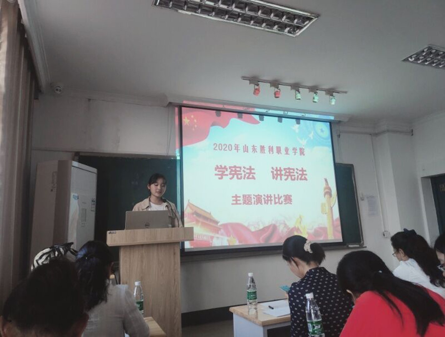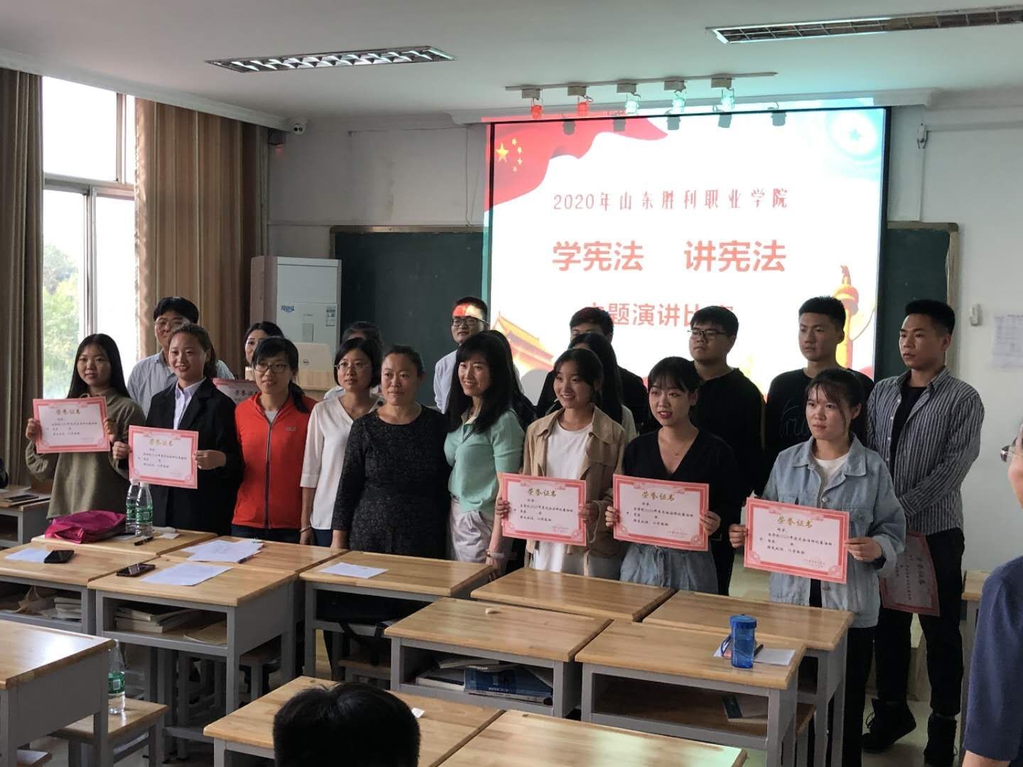 为了贯彻落实党的十八大和十八届三中、四中、五中全会及习近平总书记系列重要讲话精神,落实《省委宣传部 省司法厅关于在全省公民中开展法治宣传教育的第七个五年规划(2016—2020年)》《全国教育系统开展法治宣传教育的第七个五年规划(2016—2020年)》《青少年法治教育大纲》要求,全面推动各级各类学校广泛深入地开展宪法教育,使广大青少年学生深入了解宪法、尊崇宪法,弘扬宪法精神,增强法治观念。山东胜利职业学院于2020年9月25日组织开展了学宪法讲宪法主题比赛。