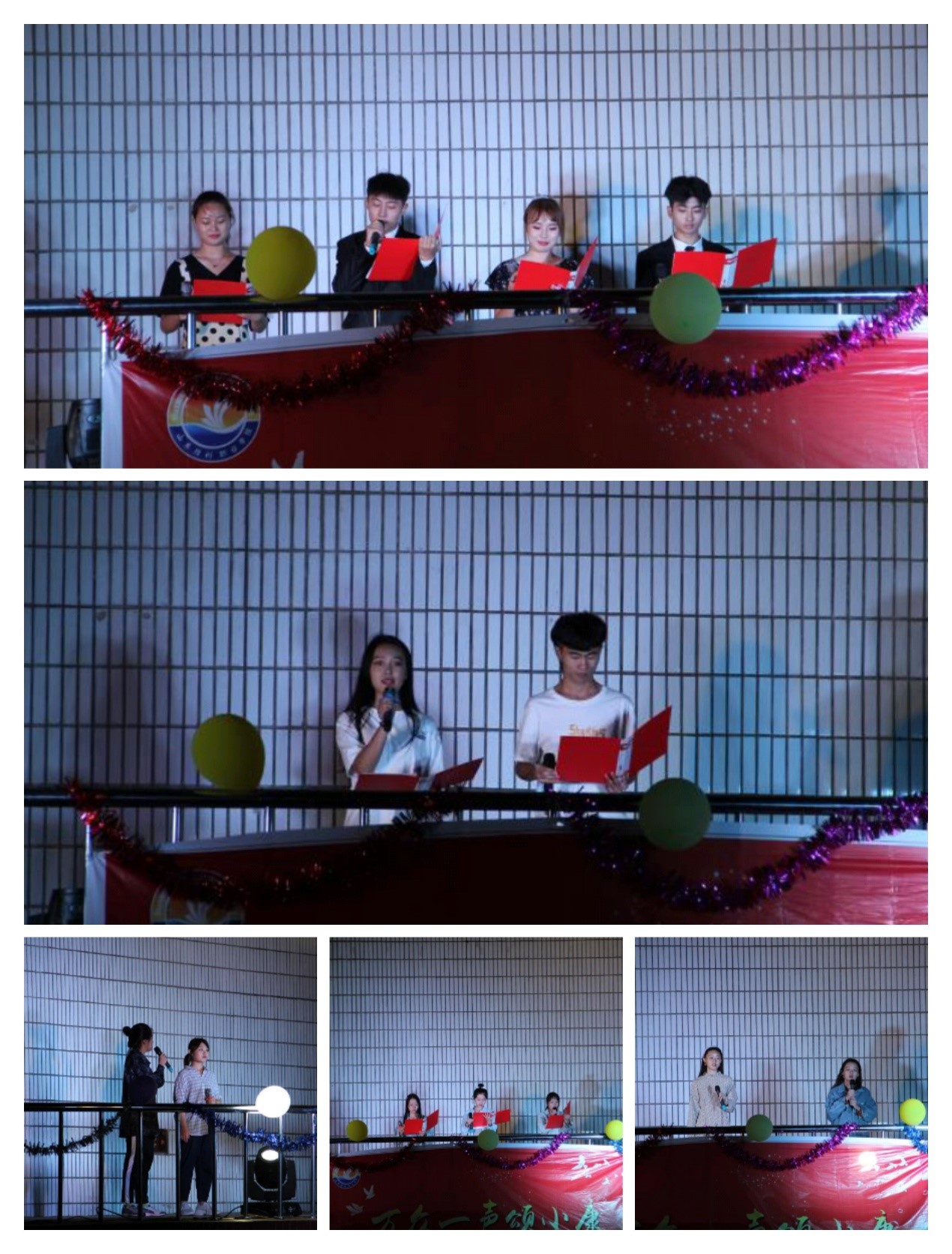 晚会邀请了智慧产业学院、教务处、信息中心相关领导与智慧产业学院全体学生共度这个难忘的夜晚,随着主持人的开场白结束,晚会也正式拉开了序幕,郭念珂同学的《脱口秀》为整个晚会带来了轻松愉悦的开场;慷慨激昂的朗诵声,振奋着每一位同学的心,热血青年们带来了很多精彩绝伦的朗诵,《百年追梦,全面小康》、《我们一起奔小康》、《少年中国说》等作品,也将整个晚会推向高潮。抒情歌曲《那年初夏》、《大鱼》、《成都》等慢慢的将整个晚会带入尾声。