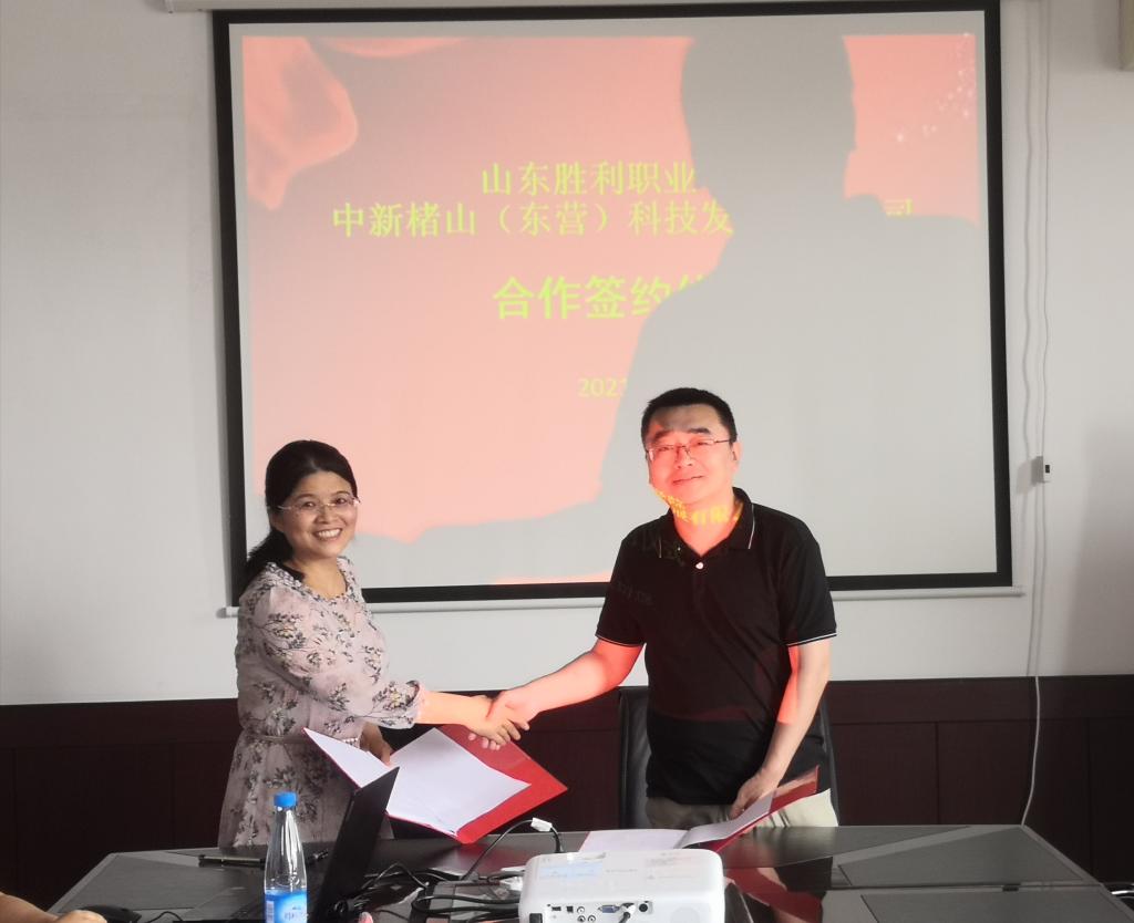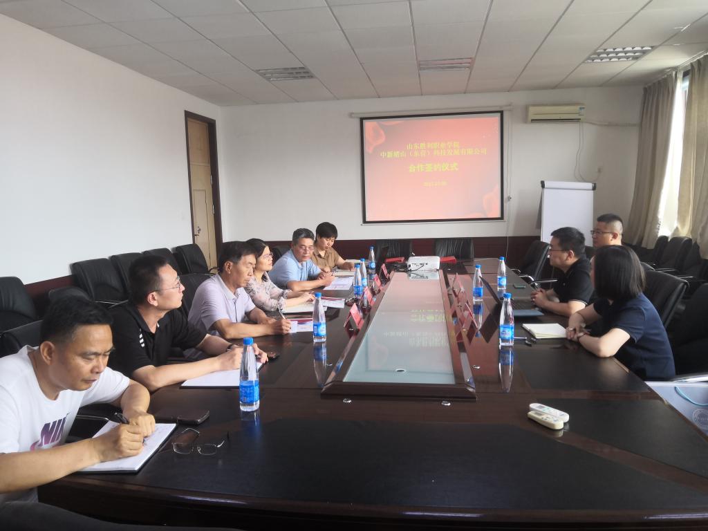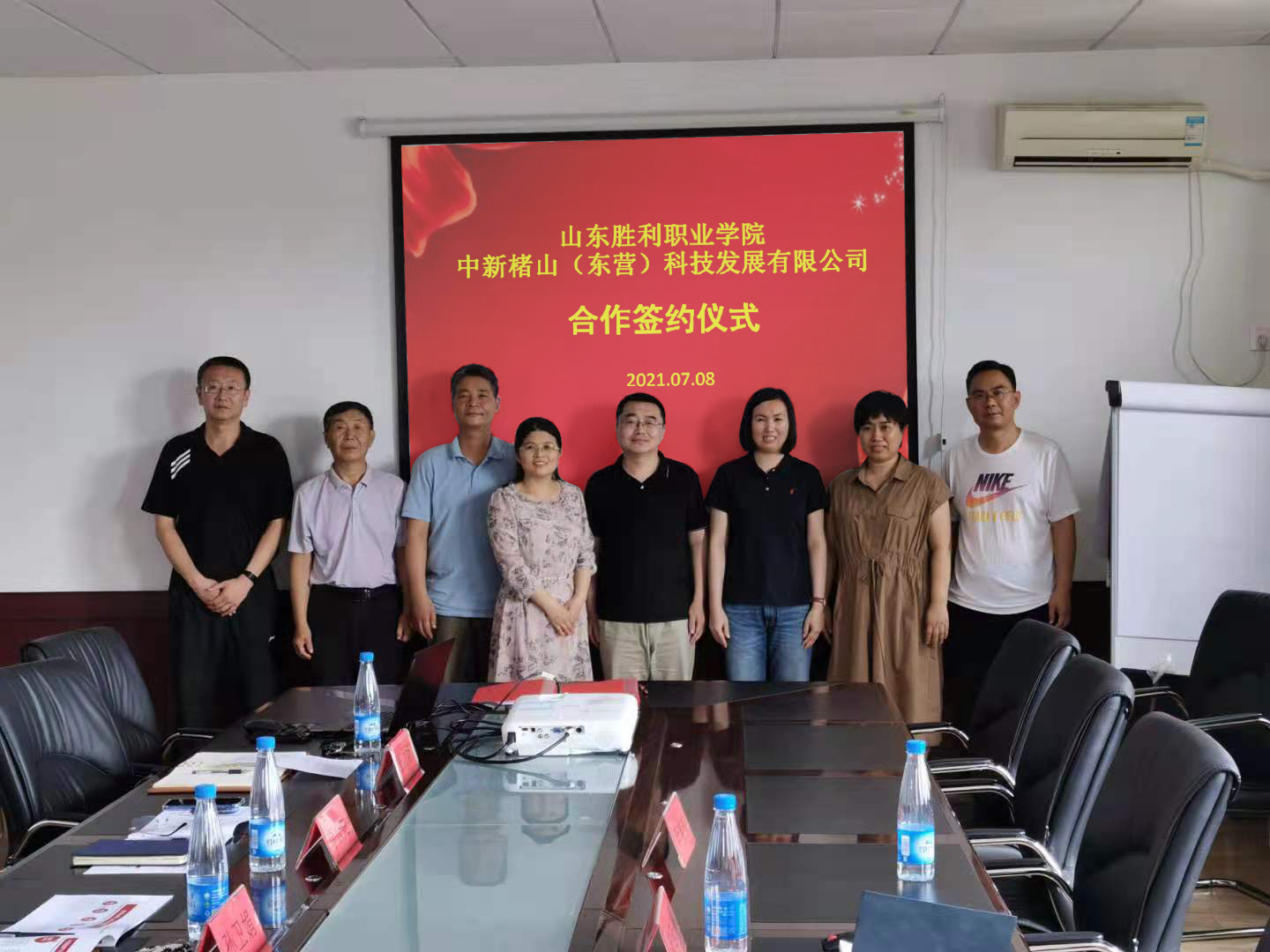 7月8日下午,山东胜利职业学院与中新楮山(东营)科技发展有限公司在致知楼211会议室成功举行校企合作签约仪式。学院副院长孙卫娟、招生就业与学生工作处处长李长龙、智慧产业学院院长郭念田、书记王月娥、副院长晁胜利、副书记奚道友,中新楮山(东营)科技发展有限公司董事长方延平、总经理李君、招商办主任李勇武出席此次签约仪式。