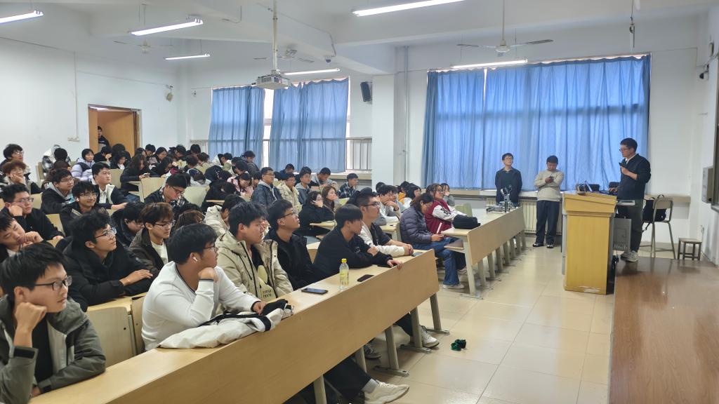 在无人机板块主讲人结合行业报告数据指出,当前我国工业级无人机市场规模年年递增,在测绘勘查、农业植保、电力巡检等领域需求旺盛。他以公司参与的“某山区地形三维测绘项目”为例,展示了无人机搭载多光谱相机、激光雷达后,如何在短短数小时内完成传统团队数天的工作量,“无人机技术的核心竞争力在于效率与精度的双重突破,这也是同学们未来就业的核心优势所在。”同学们对无人机技术与3D高斯技术在测绘、影视、工业等领域的价值有了清晰认知,现场互动频繁,学术氛围浓厚。
