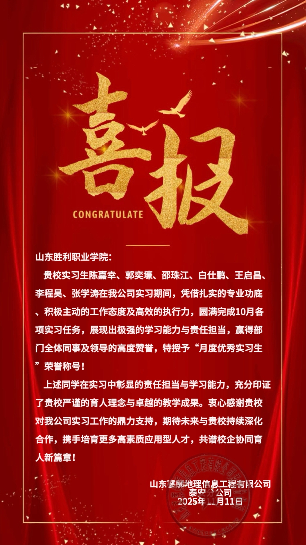 近日,智能制造学院23级多名实习学生凭借扎实的专业功底和出色的工作表现,获得合作企业的一致好评。企业通过感谢信、喜报等形式,对学生在岗位上的表现给予充分肯定。