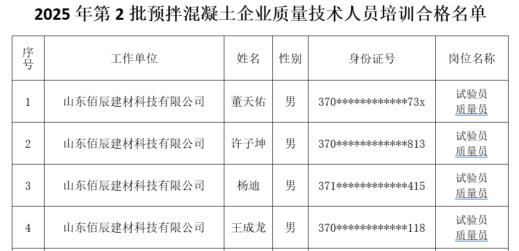 2025年第2批预拌混凝土企业质量技术人员培训合格名单