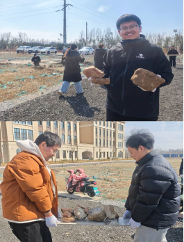 各班辅导员全程陪伴参与,以身作则带头清理石块,和同学们并肩劳作,时不时叮嘱大家注意脚下安全,时不时搭把手助力搬运,师生同心、其乐融融,彻底打破了课堂上的师生界限,在劳动中拉近了彼此的距离。同学们一边忙碌一边欢声笑语,原本枯燥的体力劳动,变成了充满乐趣的集体实践,大家丝毫没有抱怨脏累,反而格外珍惜这份共同建设校园的体验,用汗水浇灌着对学校的热爱。