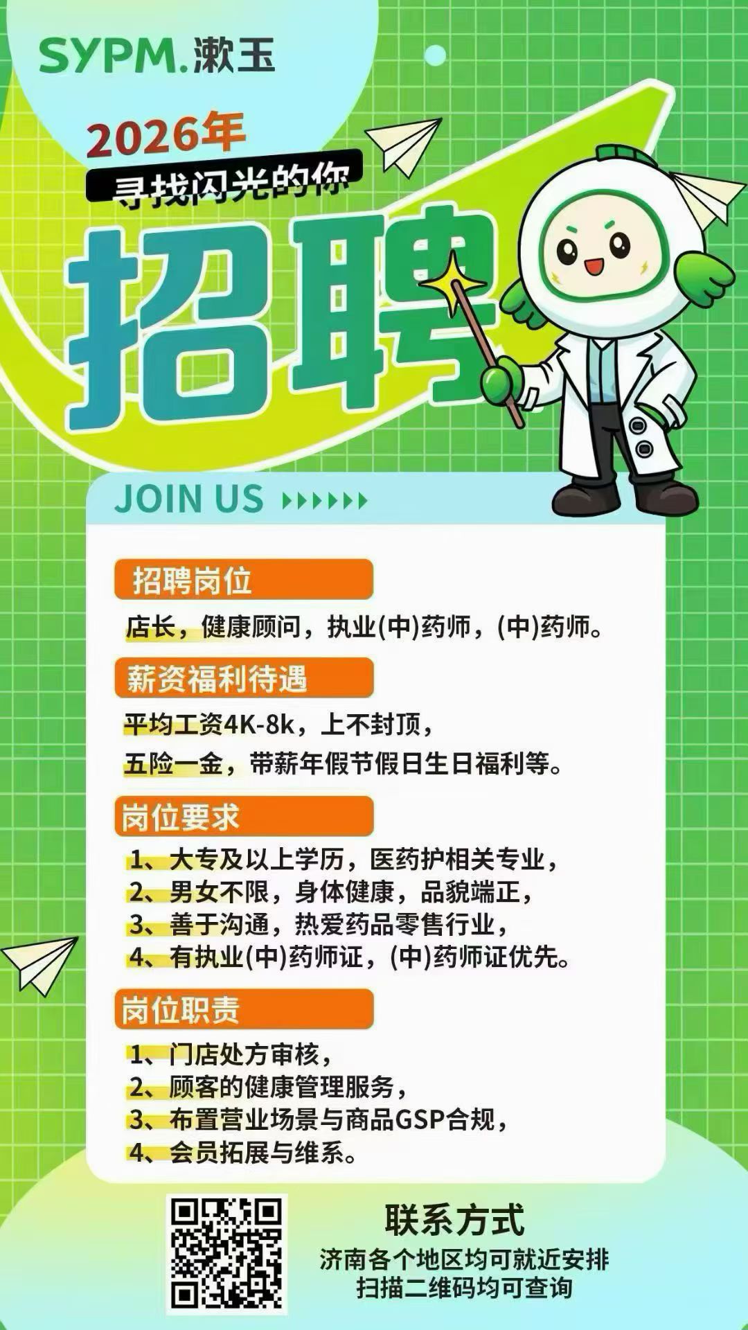 招聘信息——漱玉大药房