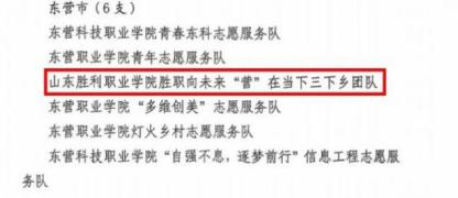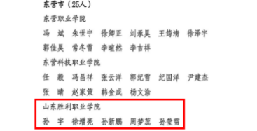 近日,共青团山东省委公布了《关于“调研山东”——2024年山东省大中专学生志愿者暑期“三下乡”社会实践活动的通报》,我校师生荣获多项省级表彰,其中杨帆、宋佳琦、田新昌三位老师获评“优秀指导老师”;孙宇、徐增亮、孙新鹏等五名同学获评“优秀学生”;山东胜利职业学院胜职向未来“营”在当下团队获评“优秀实践团队”。